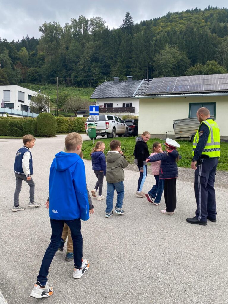 Am 30. September 2025 war der Herr Polizist bei uns in der Schule und hat uns zuerst in der Klasse eine Einführung gegeben und anschließend draußen im Straßenverkehr.