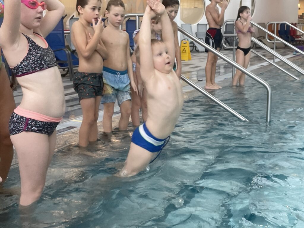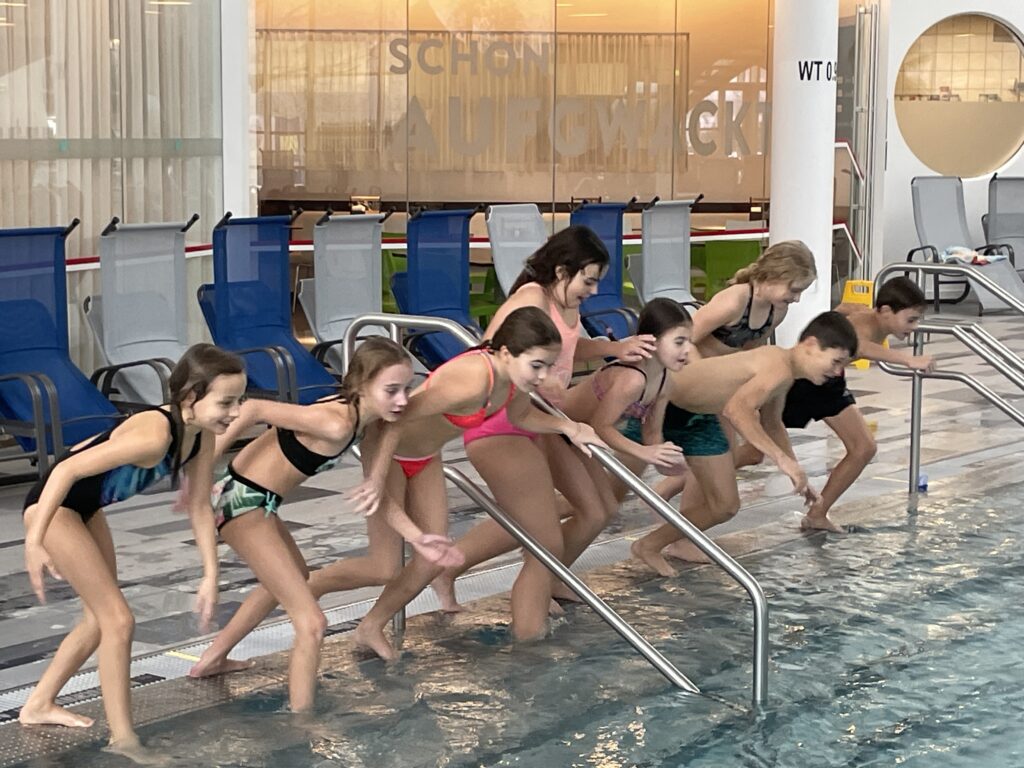 Jene Schülerinnen und Schüler, die noch nicht ganz so sicher waren, konnten viel dazulernen und am Ende der 3 Tage als sichere Schwimmer eingestuft werden. Das schönste Ereignis aber war, dass unserer „Erstklässler“ sich schon einige Meter sicher über Wasser fortbewegen konnte und mit etwas Übung bis zum Juni auch als Schwimmer geführt werden kann.